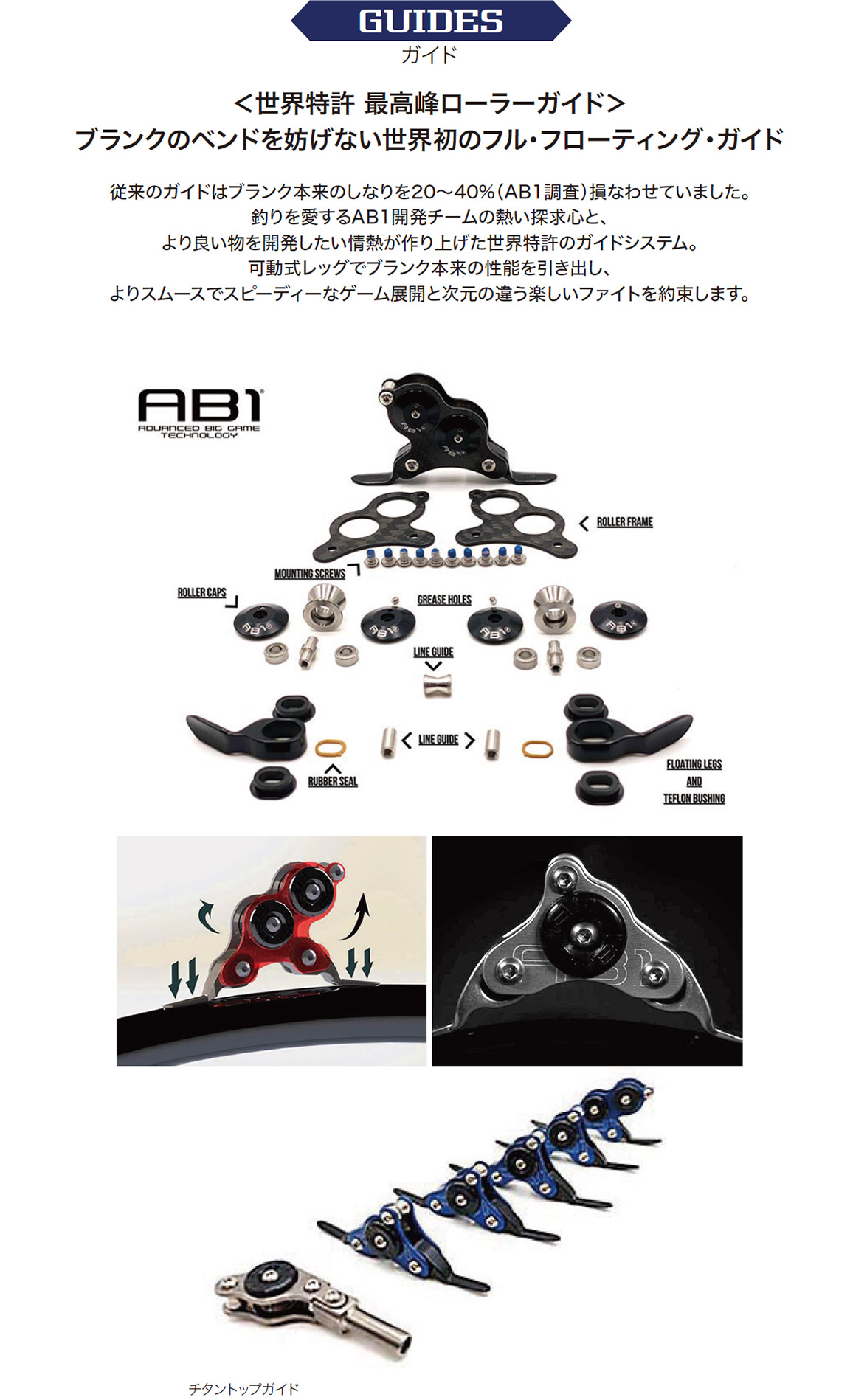 AB1は、釣りとモトクロスに情熱を傾けるオーナーのアレックスと、彼と同じ思いを持つ仲間が集まり、2016年に設立されました。数多くの試作とテストを重ね、作り上げられたフル・フローティング・ガイド・システムは、非常に革新的なものとなり、そしてロッドに求められる理想を現実のものとしました。